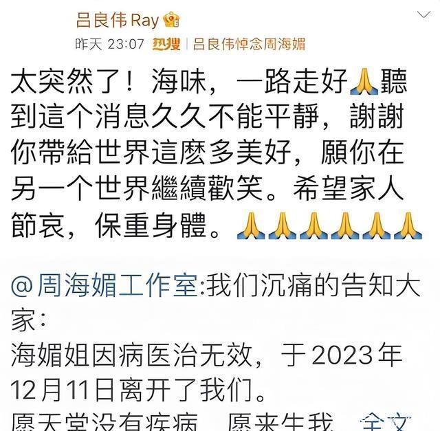 北京初雪落下,抗癌10年的何晴不敌病魔,魂归离恨天; 这不禁让人想到同样在雪日告别的周海媚。