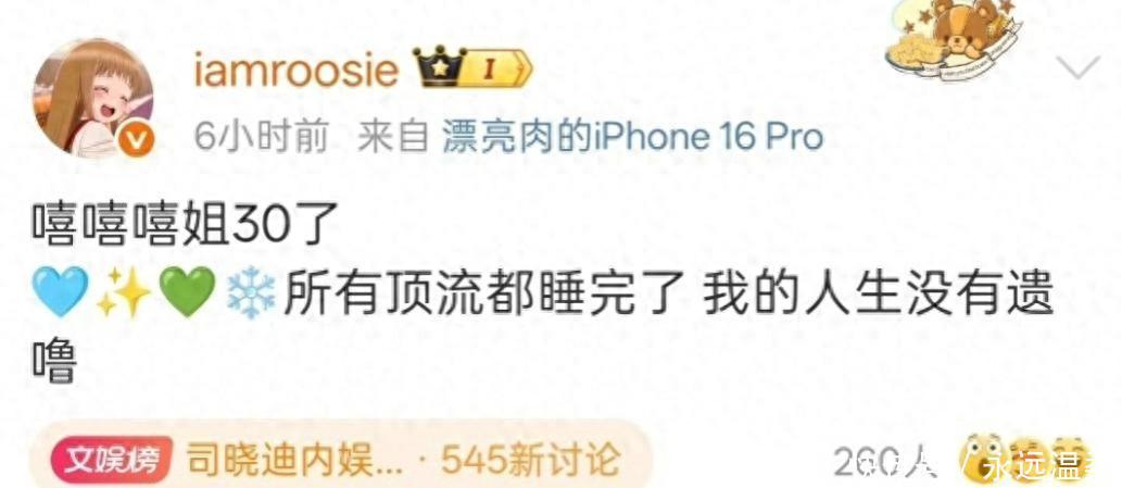 更劲爆的是,网红司晓迪突然甩出一张打码合照,床上那人的轮廓、睡姿,怎么看都像鹿晗。虽说AI能造假,但照片里大理石台面的纹路,居然和鹿晗早前晒过的厨房一模一样;连她车里拍到的司机,都跟鹿晗身边那位长得惊人地像。这些细节堆在一起,想当巧合都难。 关晓彤那边倒好,不澄清、不回应,直到风波闹大,工作室突然高调发帖,一口气放出11张美照加视频,配文还是句土味情话:“爱你至死不渝”。明眼人都看得出来,这话更像是对粉丝喊的,而不是给鹿晗的。一边是男友深陷舆论漩涡,一边是她笑盈盈地营业互动,体面?早没了。